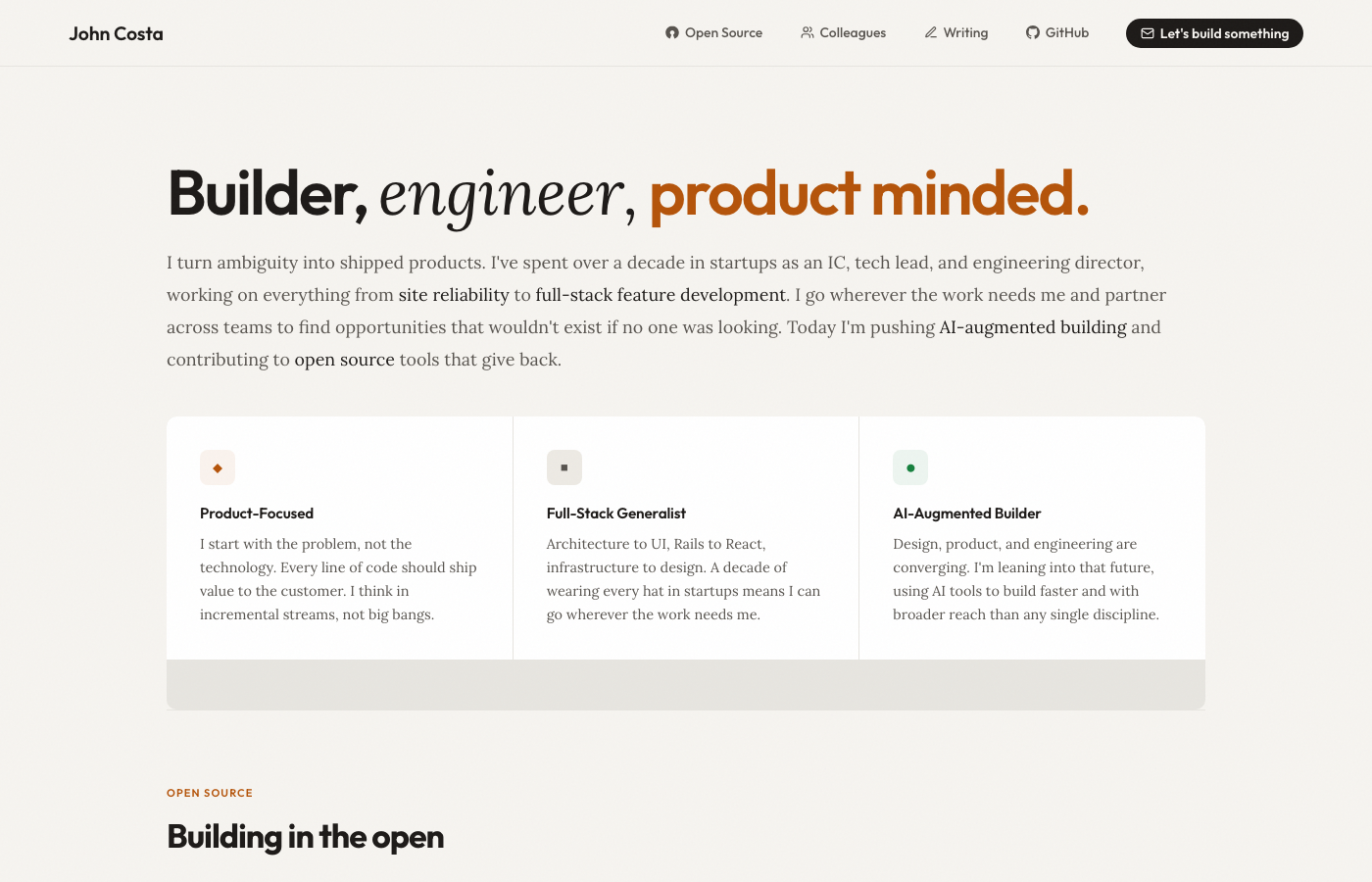 The site is at jcosta.tech. It looks like a simple static page. Under the hood, it's quietly keeping itself current. That's the whole point. The best infrastructure is the kind nobody notices.